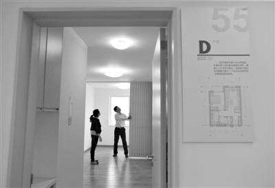 昨日,京原家园小区内的北京市公租房体验馆首次开放,工作人员展示公租房的新式设计。新京报记者 韩萌 摄