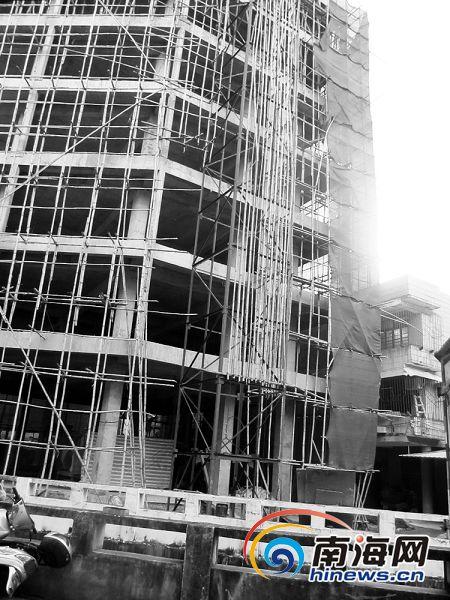 海口七层违建紧挨排洪沟 城管来过多次仍未拆除
