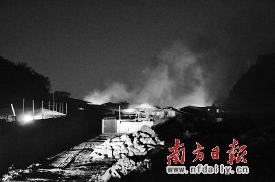 位于花都和佛山南海交界处,一家“三无工厂”在夜间偷排废气。 南方日报记者 闫昆仑 摄