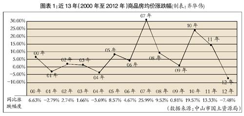记者统计中山市国土资源局公布的2003年到2012年的商品房交易数据看到,中山新建商品房(包括住宅和非住宅)均价从2003年的2915元/m2上涨到2012年的5564元/m2,十年间涨幅为90.8%,而同期广州的房价涨幅超过了200%。如果计算从2008年到2012年这5年来的数据可以看到,中山一手住宅均价从2008年的4317元/m2到2012年的5235元/m2,5年上涨了21%。同期一线城市房价普遍是动辄翻番。