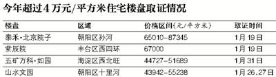 1月以来已有3个高价盘获取预售证;2月12日大兴天宫院一普通楼盘以22000元/平方米取证