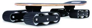 喜爱玩滑板的同学一定会躲着草地,否则一不小心就会被草地“困住”。不过,设计师已经给出了新的解决方案——全地形滑板。设计师参考坦克的设计要点,将滑板的轮子也加上了履带,这样一来,普通滑板就变成了“越野滑板”,而且还增加了抓地力,不容易摔倒。