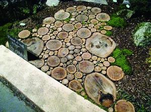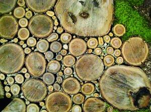 一般公园里常常有用石子铺出的小路,现在就有设计师改用横切的木材铺路。设计师Katy Elliott的灵感来源于观看一次鲜花展览,里面有很多园艺师鼓励大家自己装饰花园。于是Katy就想到了用木材做装饰。她将木材横切成等高的高度,大小随机排列,这样铺出来的木头小径的确相当美观和舒适。