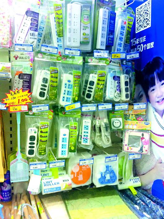 ▲双山大街某超市仍在销售非国标插座。