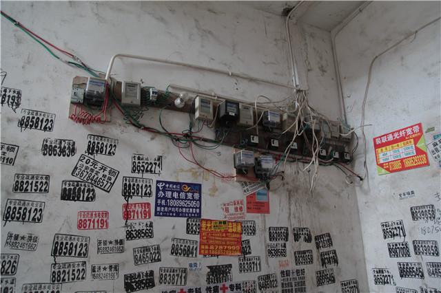 在高桥镇鱼芽村,记者近距离观察这些“黑楼房”,眼前的景象让人震惊。所有的楼道都没有安装单元门,没有电梯,楼道里的窗户连窗框都没有,更谈不上安装玻璃;“黑楼房”的外墙上,一个小型水泵连接着数根水管,沿外墙蛇一样爬行,最终钻进各家的窗户。几乎每家住户的房门周边,密密麻麻的小广告连接起来,犹如别致的装饰画。由于没有正规的水电设施,每隔两三个楼层,都有十几个样式各异、大小不一的电表被随意钉在楼道里,杂乱的电线,一头连着电表,一头蜿蜒伸进各家房门。