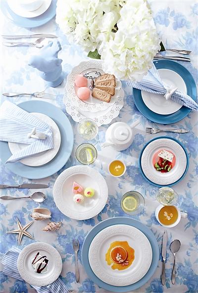 洁净的白,淡雅的蓝,简单明快的纯色餐盘,精致细腻的镂空刻花,在夏日拼凑出一次宁和清凉的下午茶。