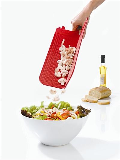 能够折叠的果色案板,让人不必再担忧案板上的食物不能全部跳入碗中,实现“快到碗里来”的指令显得更加轻松。
