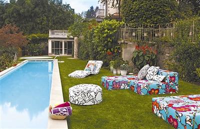 大胆的撞色,炫目的图形,慵懒的形态,可室内使用亦可放在户外泳池旁的沙发床,让人在夏天感受活力与清凉,享受惬意与舒适。