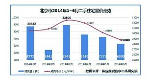 据伟业我爱我家市场研究院统计,刚过去的6月,北京二手住宅交易均价回落至28800元/平方米,与3月份相比,房价跌幅达到11.4%。链家地产市场研究部数据显示,6月北京市二手住宅成交均价为27427元/平方米,环比下降4%。伟业我爱我家分析师认为,2014年上半年,北京二手房市场供求比已从去年上半年的1:10.4下降到目前的1:4.7。房源增加,购房人减少使得二手房市场供不应求的矛盾得以明显缓解。