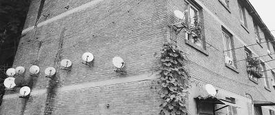 10个卫星锅挤在一面墙上,旁边墙上还挂了两个 记者周超 摄