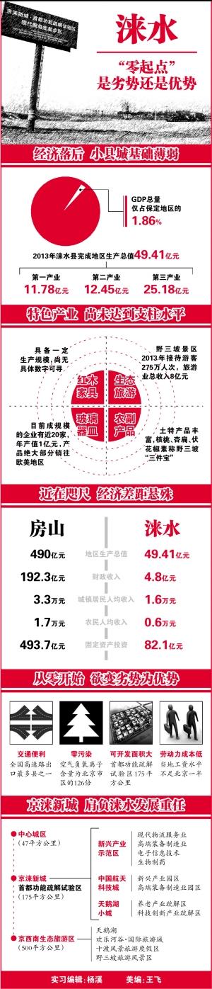 “2015年带动全县地区生产总值达到80亿元、2020年带动全县财政收入达到60亿元、2030年京涞新城生产总值达到2000亿元……”看着京涞新城资料里一一列举的这些未来的发展目标,仿佛一座现代化的新城呼之欲出。去年涞水GDP不足50亿元,完成财政收入不足4亿元,这就意味着未来16年间,涞水GDP需要增长超过40倍。