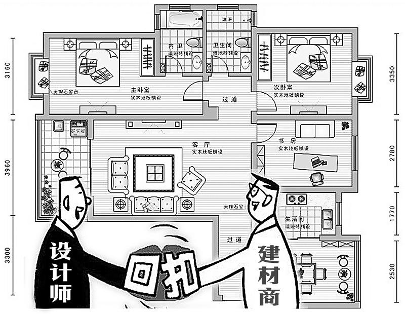 那么,事实是这样的吗?既然是你情我愿的事儿,那么设计师为何还要让商家配合自己演好双簧戏?为何还要在向消费者推荐建材产品时欲盖弥彰、遮遮掩掩?笔者认为,在这场双簧戏中,从演员到观众,没有一方是自愿的。