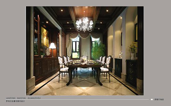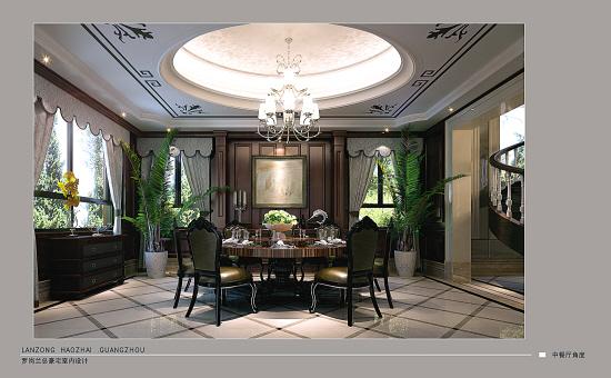 兰先生家的别墅面积足够大,在空间布局上可以有更多自由选择。由于餐厅是聚会的一个重要场所,因此,设计师选择将业主要求的两个客厅都放在一楼。兰先生比较爱吃西餐,加上家里人不多的时候,也以吃简餐为主,因此,一个日常使用的西餐厅必不可少。但客人多时,西餐厅不符合聚会需求,因此,一个聚会使用的中餐厅就变得很有必要。