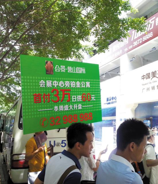 上周末在宏发楼巴停靠点,增城公寓打出“首付3万元”的入市低门槛