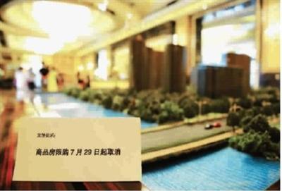 ■ 7月29日杭州某楼盘售楼处贴出取消限购告示 图 IC