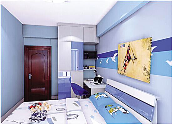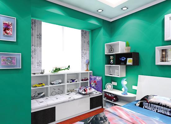例如在一个儿童房间,落地窗的一段有一个“L”形凸起。此时,可以在落地窗前做定制长凳,与凸起等深,拉平墙面。同时,也打造出一个舒适的窗边休闲台。“L”形的另一侧墙面有一定长度,可以定制一个转角书桌加书柜,一方面很好地减少柱子的存在感,另一方面,也能增加书桌台面的操作空间。