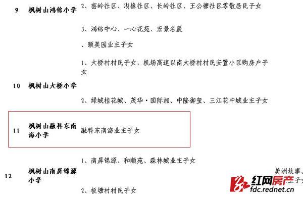 (雨花区教育局网“2014年秋季雨花区小学招生范围公示”上看到,旭辉香樟公馆并未被划入枫树山融科东南海小学。)