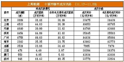 上周(11月17日-11月23日)北京商品住宅成交排名: (数据来源:亚豪机构,仅供参考)
