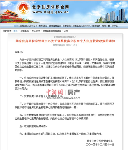 中新网12月31日电 今天北京住房公积金网站发布公告:为进一步支持缴存职工利用住房公积金个人住房贷款(以下简称贷款)购买自住住房,根据《关于发展住房公积金个人住房贷款业务的通知》(建金〔2014〕148号)文件精神,结合北京地区住房公积金管理工作实际,经北京住房公积金管理委员会同意,现就调整贷款政策有关问题通知如下: