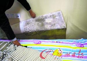 陈先生无奈只得签署了收楼协议。但进入房间一看,“整个房间一股霉味,到处都是黑色的虫子,墙上都是霉斑。”陈先生表示,当时物管只答应为其维修。“但是至今已修了6次,还是那个样子。”陈先生很无奈。