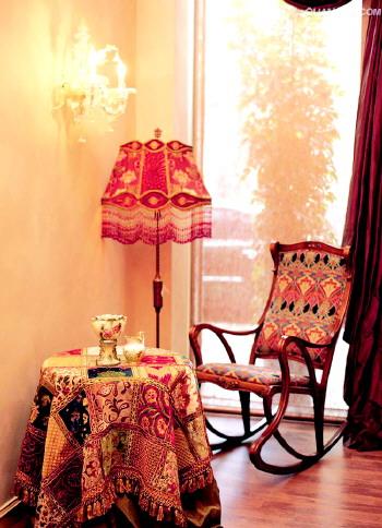 在钢筋水泥的城市生活中,打造一个专属自己的热带丛林,珍奇百宝屋式的风格和一切超现实的元素会让人灵感全开,活力满分。以木质色调为底色,由浅至深,结合蓬勃的绿色、紫罗兰色、蓝色、红色、橙色和黄色,再加上浮夸的金属色,这种颜色搭配运用在家居设计上能做出非常正宗的波西米亚居室效果。波西米亚风格的关键词是热情、野性、原始、华丽,因此异国情调的动植物、超现实元素、不规则条纹等元素的加入,会有一种原始与粗粝的美感。提花、镶边的高端编织品也是波西米亚风的两大织物元素。