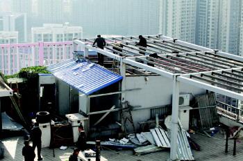 当日中午,执法人员将这处面积50余平方米的楼顶违建全部拆除。据了解,下一步市南城管将对颐中高山小区进行排查,依法处理楼顶乱搭乱建行为。(记者 杨广帅 通讯员 李洁)