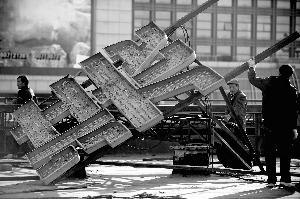 1月11日,北京“动批”天皓成批发市场摘牌撤市。 首席摄影记者 蔡代征/摄