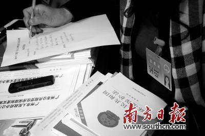 有人大代表带着厚厚的材料前来反映情况。 南方日报记者 符超军 摄