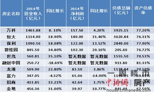 4.9 中国新闻网 多家龙头房企2014年净利增速下滑 资产负债率普遍高企