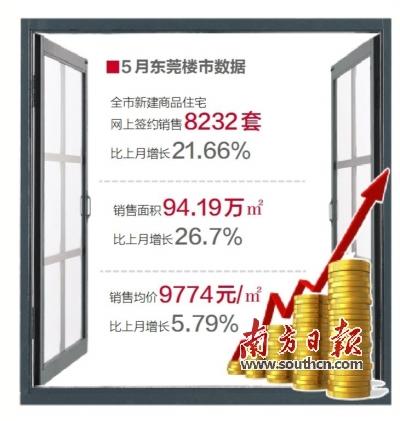 在房地产政策“组合拳”的刺激下,东莞5月住宅楼市成交延续4月势头,继续升温。15日,市统计局发布了东莞5月份房价数据,全市新建商品住宅网上签约销售8232套,销售均价为9774元/平方米,呈现量价齐升,连续2个月上涨。