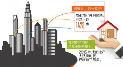 原本,铁狮门、太盟投资和万科准备联合收购企业天地三期,涉及35.7亿,可谓业界较大的并购。然而,近期恒大地产以65亿港元的代价,一手收购华人置业名下的三个项目,一时间,将这轮地产并购推向高潮。据统计,近半年来,成都地产并购频频,涉及土地1472亩。“在房地产市场大变革的背景下,2015年成都地产大洗牌时代,已吹响了号角。”一位资深成都地产圈人士用词颇为戏剧化地评价。