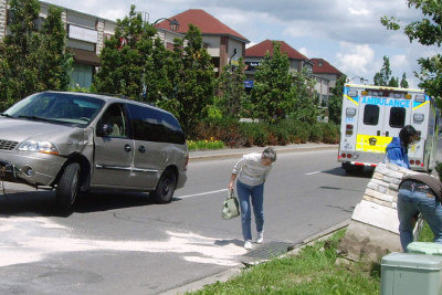 6月29日下午约2时许,位于Kennedy Rd.与16 Ave.东北方的Bur Oak Rd.上,于Berczy Village小区内的Bur Oak Rd.上,发生一辆厢型客车因不知明原因,擦撞至Berczy Village 的社区石柱,造成该石柱几乎要连根拔起、倾倒一旁。