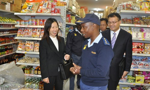 南非豪登省警察厅MZWANDILE PETROS厅长走访华人商家店铺。(《非洲时报》)