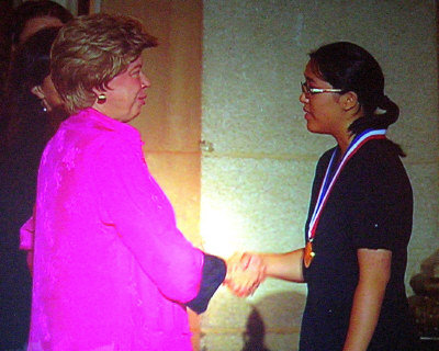 这是美国第49届举行的总统学者奖,该奖由总统任命的“白宫总统学者委员会”(The White House Commission on Presidential Scholars)根据入围学生的学术成就、艺术优越、论文、就读学校之举荐、成绩单、小区服务、领导能力等,综合考评,每州共选出应届高中生男、女各一人,另再选不分区15人及20名艺术类总统学者奖。
