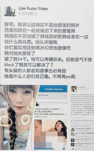 但5分钟后“Lee Kuan Yee”再发表多一则帖文,并改口指该色情照其实是他们在进行性行为时拍下的,还指吴巧儿不仅欺骗感情,还欺骗了他14000令吉。
