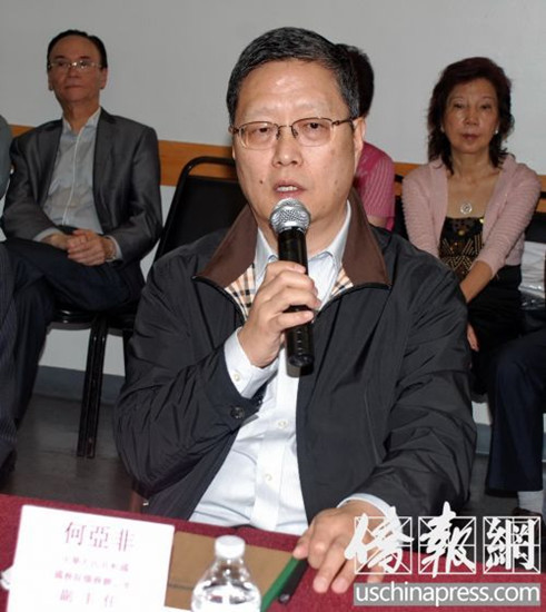 中新网8月16日电 据美国《侨报》报道,旧金山当地时间8月14日,中国国务院侨务办公室副主任何亚非一行4人刚抵达旧金山,就在中国驻旧金山总领事罗林泉等人陪同下拜访了美国华商总会和旧金山湾区中国统一促进会,受到两会同仁和多个社团侨领及代表的热烈欢迎。何副主任与两会同仁及旧金山侨领进行了友好的座谈。