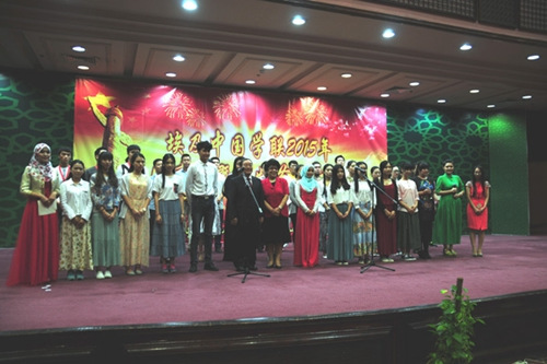 中国驻埃及大使宋爱国出席埃及中国学联2015年国庆暨宰牲节联欢会并发表讲话。新华网发(马明良摄)