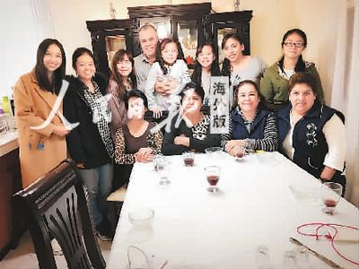图为冯甜甜(左一)和她的房东家庭在一起喝酒聊天,共同跨过2016年的最后一天。