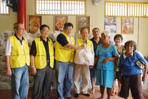中新网2月9日电 据印尼《星洲日报》报道,印尼潮州乡亲公会于周日(2月7日),在福利部主任陈俊城的率领下,前往丹格朗齐天大圣庙济贫,捐献200份爱心礼包给这间庙附近的贫困人士。