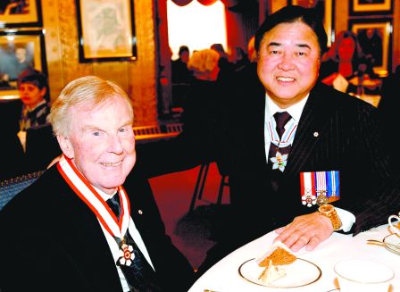 中新网2月24日电 据加拿大《明报》报道,加拿大缅尼托巴省首位华裔省督李绍麟(Philip Lee),当地时间22日在温尼辟颁发加拿大勋章给前缅省省长莱昂(Sterling Lyon)。