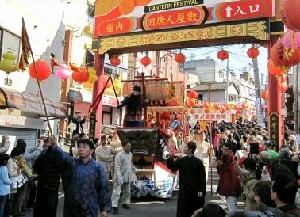 中新网2月24日电 据日本新华侨报网报道,21日,日本长崎市市民举行了“长崎灯会”期间的重头戏“请妈祖”盛装游行,大约140人身穿中国式服装,抬着保佑人们出海平安归来的“妈祖”神像,边向天空撒祭祀用的纸币,边敲锣打鼓行进在长崎是中心的大街小巷。