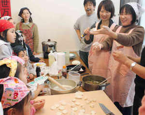 在中国,春节是一年中最隆重的节日,尤其北方地区有全家动手一起包饺子吃饺子的风俗。交流会上,到日本已经16年,来自中国吉林省的王贵勤(50岁)热心指导日本朋友怎么包饺子。包括孩子在内的40多为中国人参加了交流会。大家齐动手,其乐融融,最后,大家一起品尝了从擀皮开始亲手制作的纯手工中国水饺。