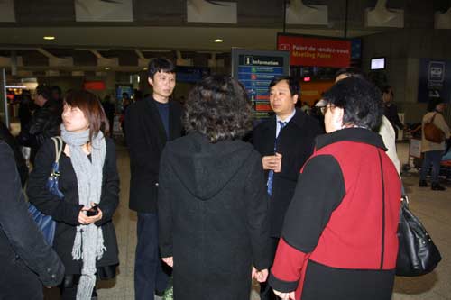 刘韦佟领事、张国强会长等到机场迎接闫明家人。