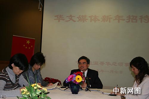 中国驻温哥华总领事馆七日下午举行华文媒体新年招待会,大温地区主要华文报刊、电台、电视台和网络媒体负责人和编辑记者近五十人出席,这位去年十月刚到任的总领事首次与当地华文媒体集体见面。