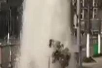 大叔为抢修消防栓钻进水柱