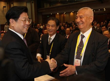 王兆国代表中共中央充分肯定了侨联一年来取得的工作成绩。他指出,各级侨联要坚持以凝聚侨心为核心,以促进和谐为己任,广泛开展侨界和谐创建活动,支持海内外侨胞热心慈善事业、参与公益活动,以爱心促和睦,以奉献促和谐;真心真意为侨界群众做好事、办实事、解难事,积极配合有关部门解决有困难的归侨侨眷的生产生活问题,使他们切实感受到党和政府的温暖。要以增进乡情、亲情、友情为重点,多渠道、多层次、多形式地开展海外联谊工作,引导广大归侨侨眷和海外侨胞大力发扬爱国爱乡优良传统,不断激发民族自信心和自豪感,为推进祖国统一,实现民族振兴做出更大的贡献。