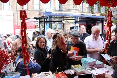 开幕仪式结束后,艾尔伯斯市长和温振顺饶有兴致地到各展台参观。中国驻法兰克福总领馆、北威州中资企业协会、杜塞尔多夫中国中心、杜市中国学生学者联合会、杜市孔子学院、杜市德中友协等搭起20多顶帐篷向参观者提供中国历史、文化、旅游等书籍资料,并进行了书法、绘画、中医、茶道、手工艺表演。在市政厅前搭建的舞台上,中德艺术家和留学生等还表演了舞狮、太极、少林功夫、云南彝族原生态音乐和杂技团等精彩的文艺节目。 中国节持续到晚上10点,吸引了3.5万多名参观者。