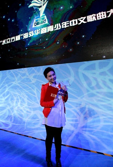 中新网8月12日电 据北京侨办消息,8月8日,2013年“水立方杯”海外华裔青少年中文歌曲大赛颁奖晚会在“水立方”国家游泳中心举办,揭晓了本次大赛的金银铜奖。来自马来西亚的选手罗翎允,获得了铜奖。