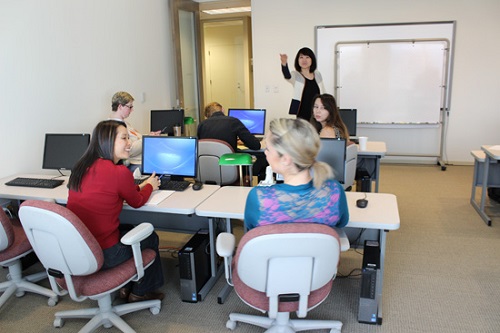 当日,美国大学网国际公司共有近40人参加汉语课的学习,分为3个班次,平均每个班13人。波州大孔子学院教师李倩担任此次汉语课的教学任务,采用本土教师编写的汉语教材、小班化教学模式、灵活轻松的教学方式和实用的日常交际内容收到了良好的教学效果。美国大学网国际公司的负责人Jennifer Loren接受采访时表示,美国大学网公司时常需要与中国各大高校进行合作,为了更好地与中国加强合作与沟通,职员们都迫切地希望学习中文。不少人曾多次到中国旅游或出差,因此对中国语言和文化的学习颇感兴趣,希望通过语言的学习加深对中国文化的理解,更好地做好中美高校连接的桥梁。
