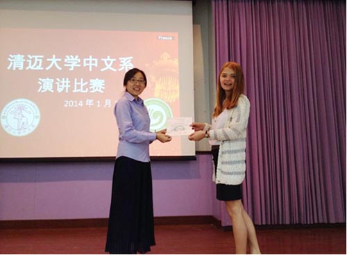 中新网2月10日电 据国家汉办网站消息,近日,“清迈大学中文系演讲比赛”在泰国清迈大学人文学院成功举行,24位来自清迈大学中文系三年级的选手参加了此次比赛。100多名中文系的学生观看了学长们的精彩演讲。